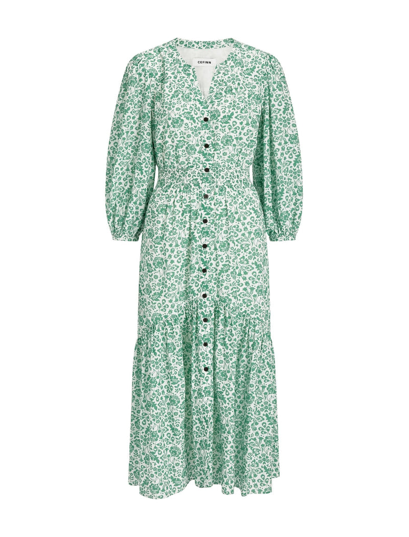 Aspen Cotton Blend Maxi Dress - Green Mono Floral Print